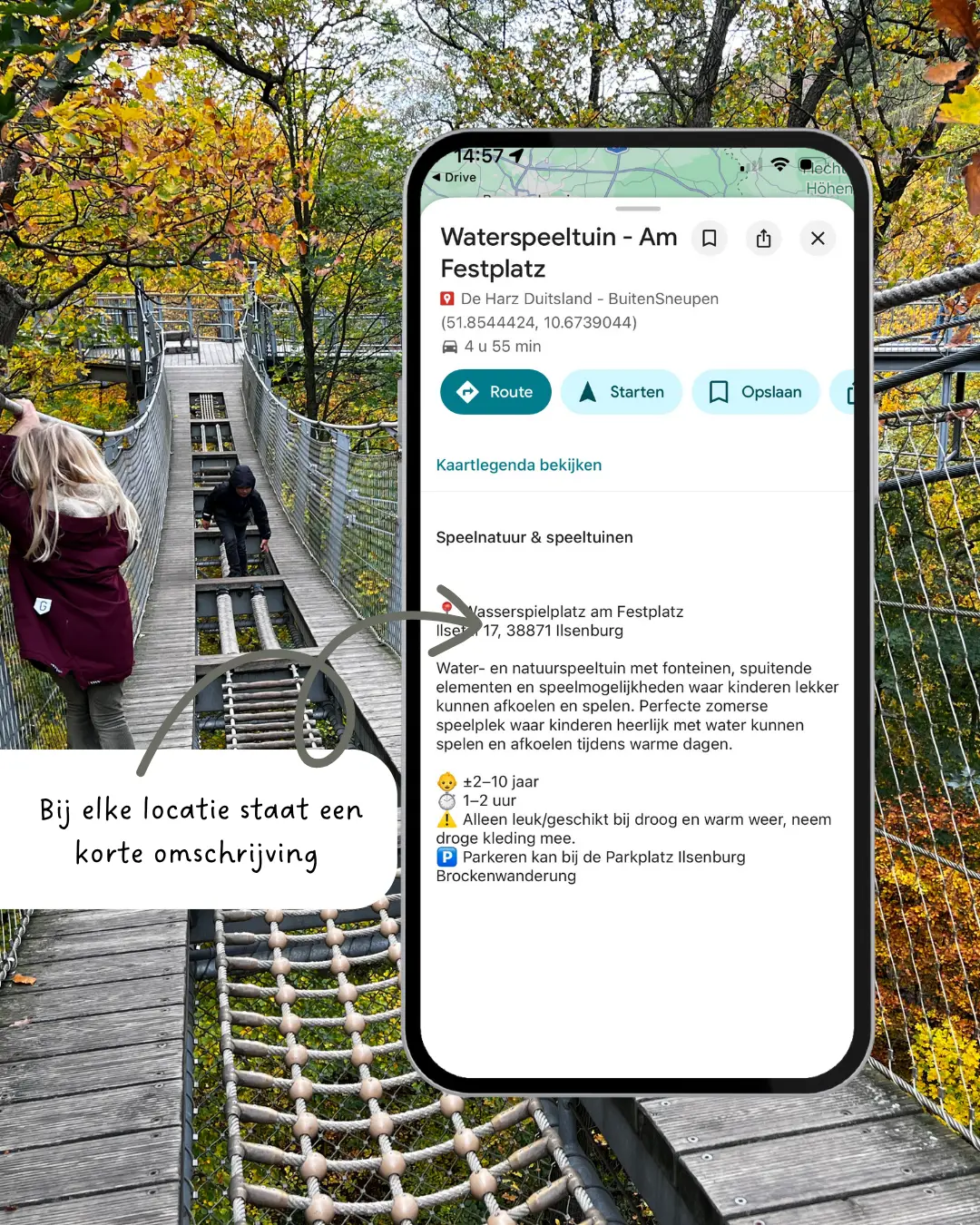 Waarschijnlijk bewaar je leuke tips uit blogs of Instagram ergens… Maar eerlijk is eerlijk, dat wordt al snel een rommeltje. Met deze kaart hoef je niet meer te zoeken en alles zelf op te slaan. Met een paar klikken heb je al onze favoriete plekken overzichtelijk bij elkaar in één kaart. Dat scheelt tijd en zorgt ervoor dat je meer kunt genieten van jouw vakantie in de Harz, Duitsland.